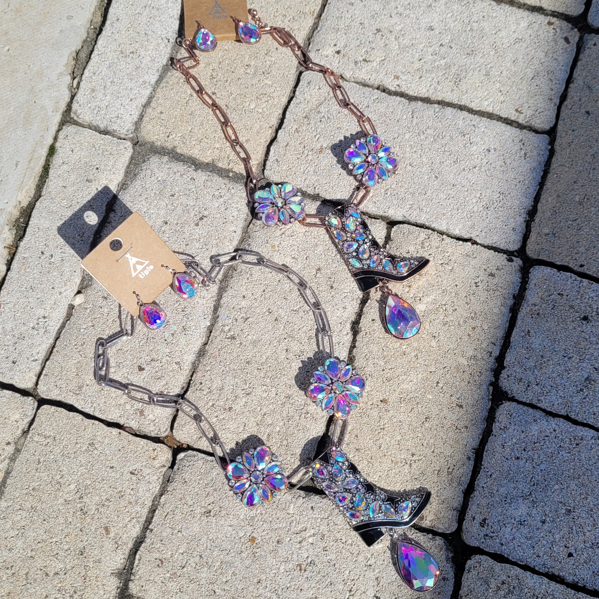 Rhinestone Bling boot necklace. With matching Earrings