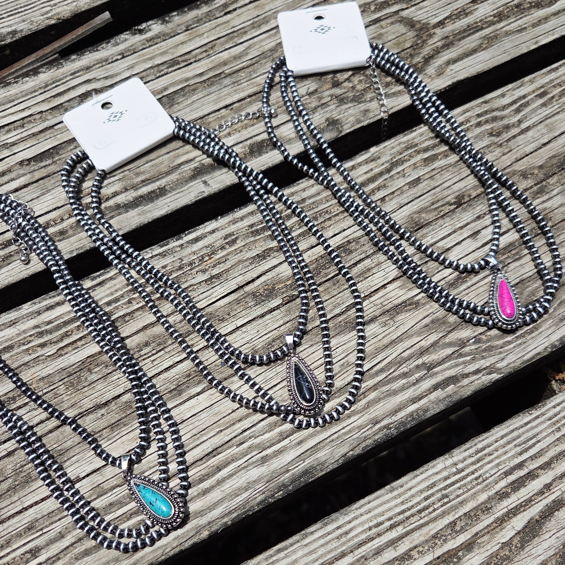 Get ready to make a statement with our Classic Navajo Necklace! With a layered style featuring stunning turquoise and faux Navajo Pearls, you'll add a touch of Southwest charm to any outfit. Perfect for adding a pop of color and personality to your wardrobe!