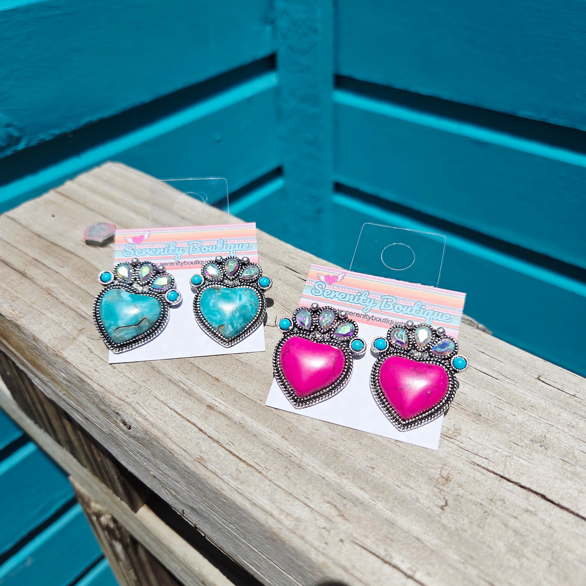 Add a touch of country charm to your wardrobe with these Honky Tonk Heart Stud Earrings. The turquoise heart shape and rhinestone stud will bring a pop of color and sparkle to any outfit. Perfect for adding a little western flair to your look. Yeehaw!