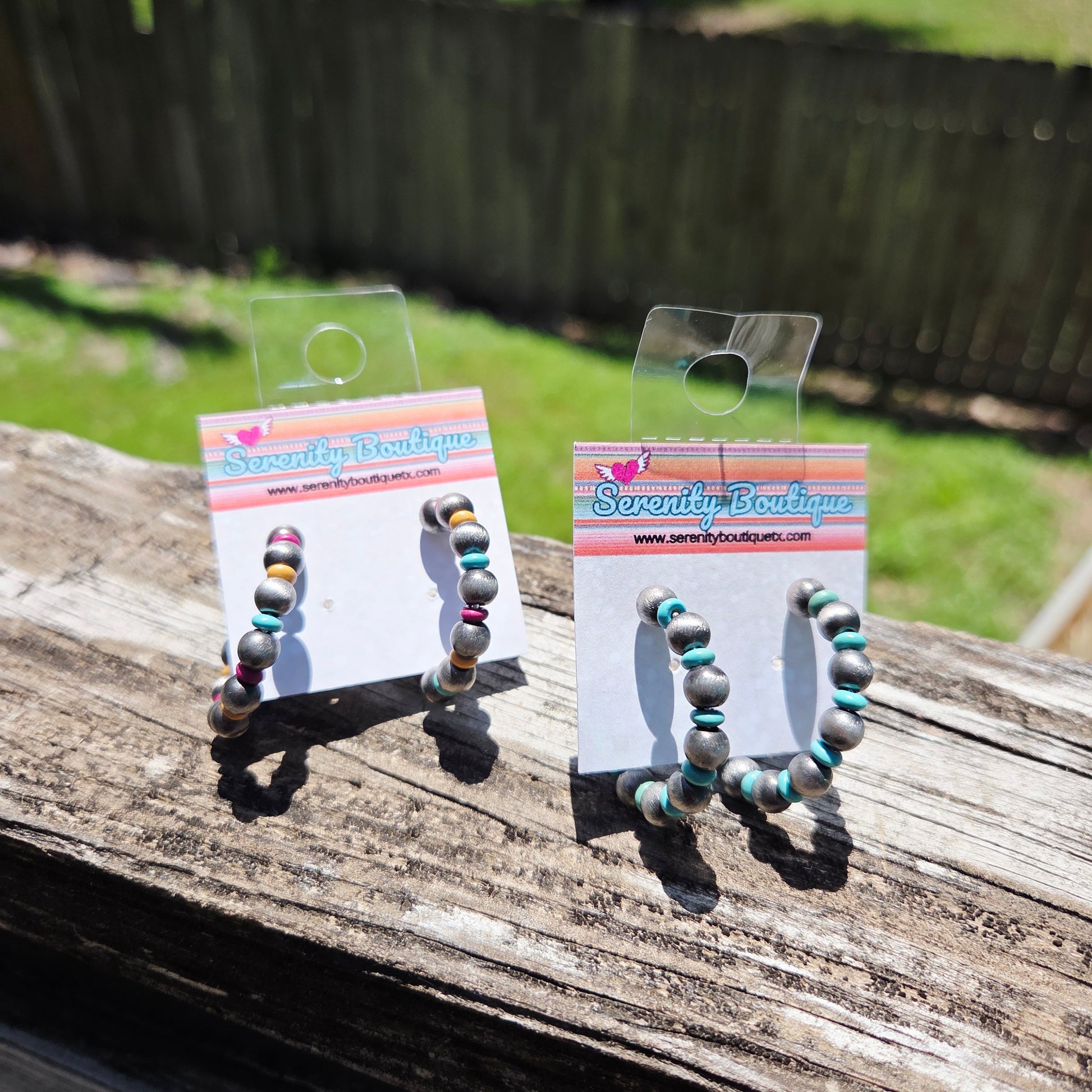 Get a taste of the wild west with our Lasso Loop Hoops. These faux Navajo Pearl earrings add a touch of Southwestern charm to any outfit. Small and lightweight, these hoops are perfect for everyday wear. Wrangle up some compliments with these playful earrings.