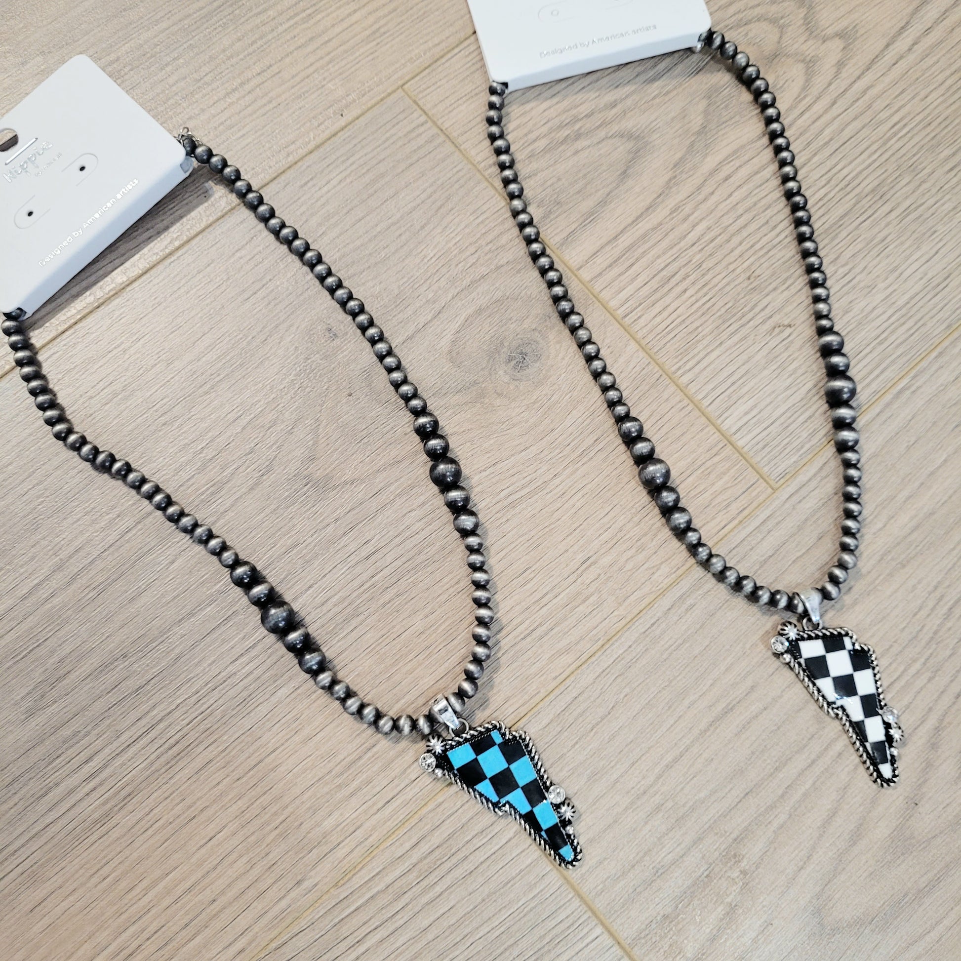 navajo Pearl and checkered lightning bolt necklace