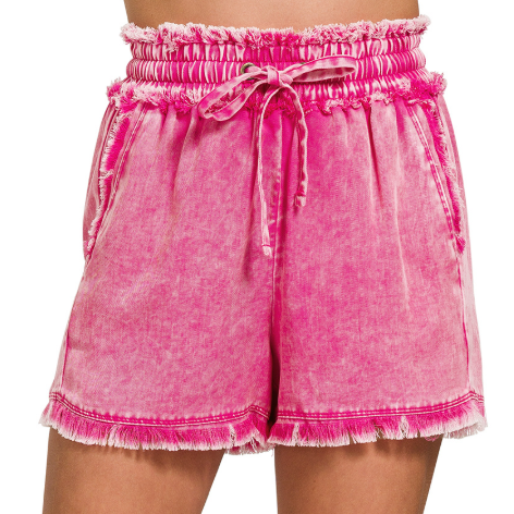 Slip into comfort with these TENCEL mineral washed shorts—soft, breathable, and oh-so-easy to style. The drawstring waist keeps things relaxed while functional pockets mean you've got room for the essentials. Featuring a laid-back fray hem for that effortlessly cool vibe. Since each pair is uniquely mineral washed, yours will be one-of-a-kind with its own color personality. Perfect for those days when you want to look put-together without trying too hard.