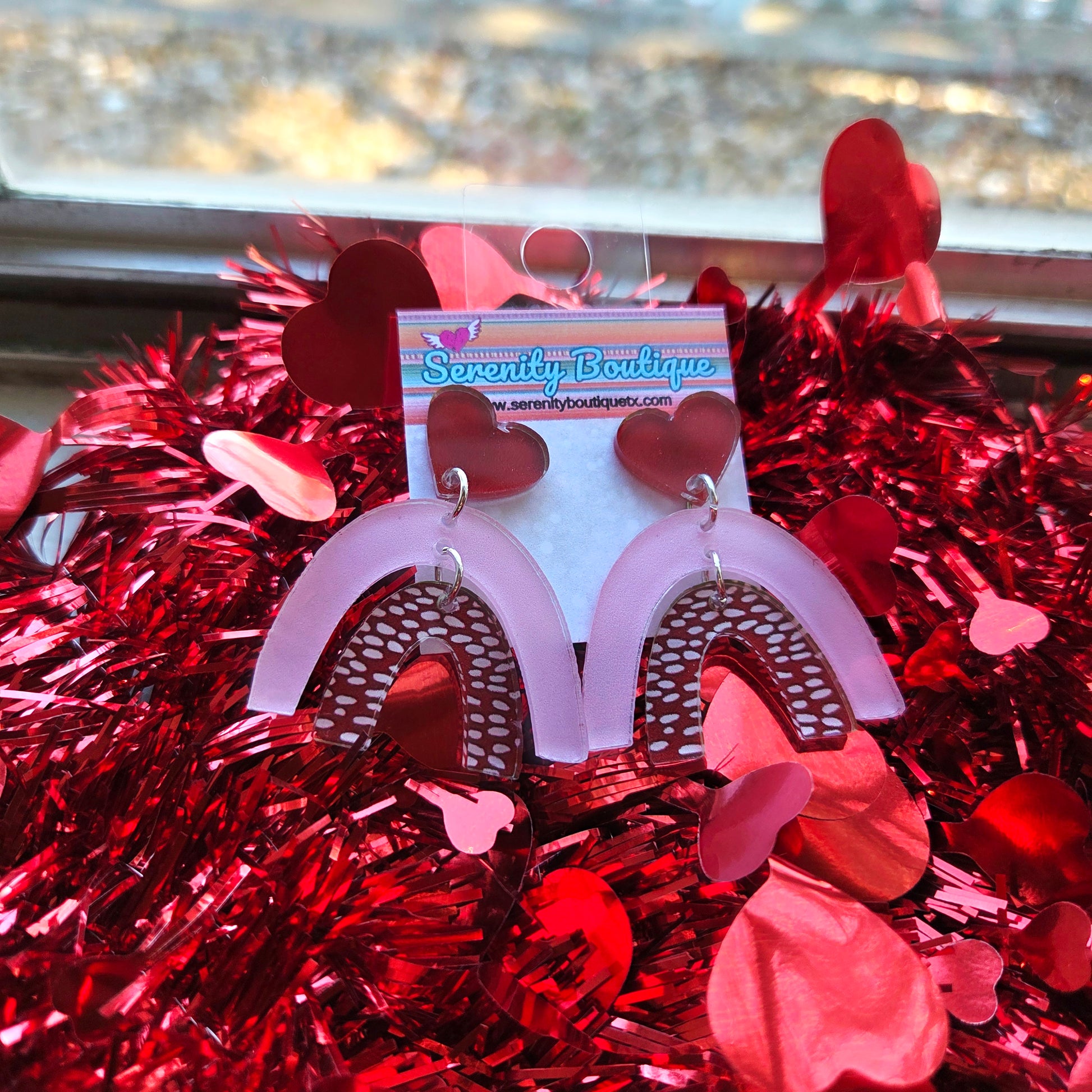 Add some color to your outfit with our Lovers Rainbow Earrings! These playful pink and red heart earrings will surely brighten up your day. Perfect for a fun and flirty look, these earrings are a must-have for any jewelry collection. Show off your unique style with these quirky and eye-catching earrings.
