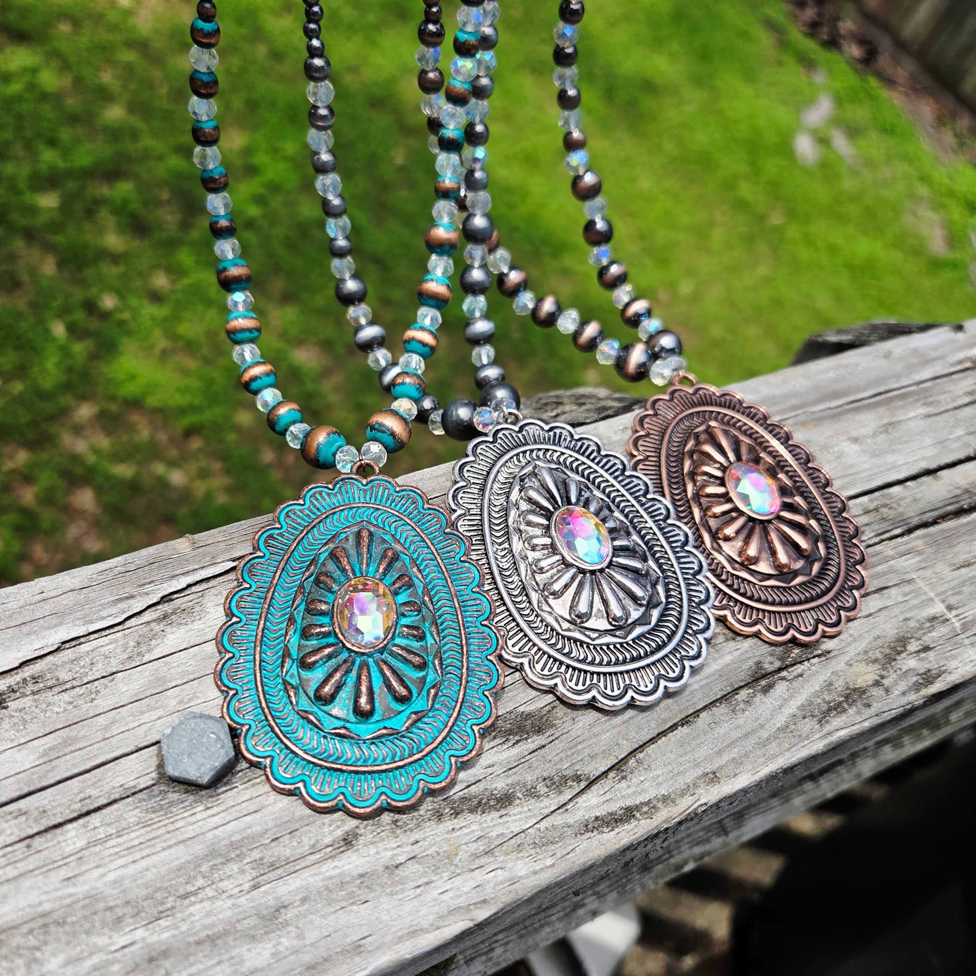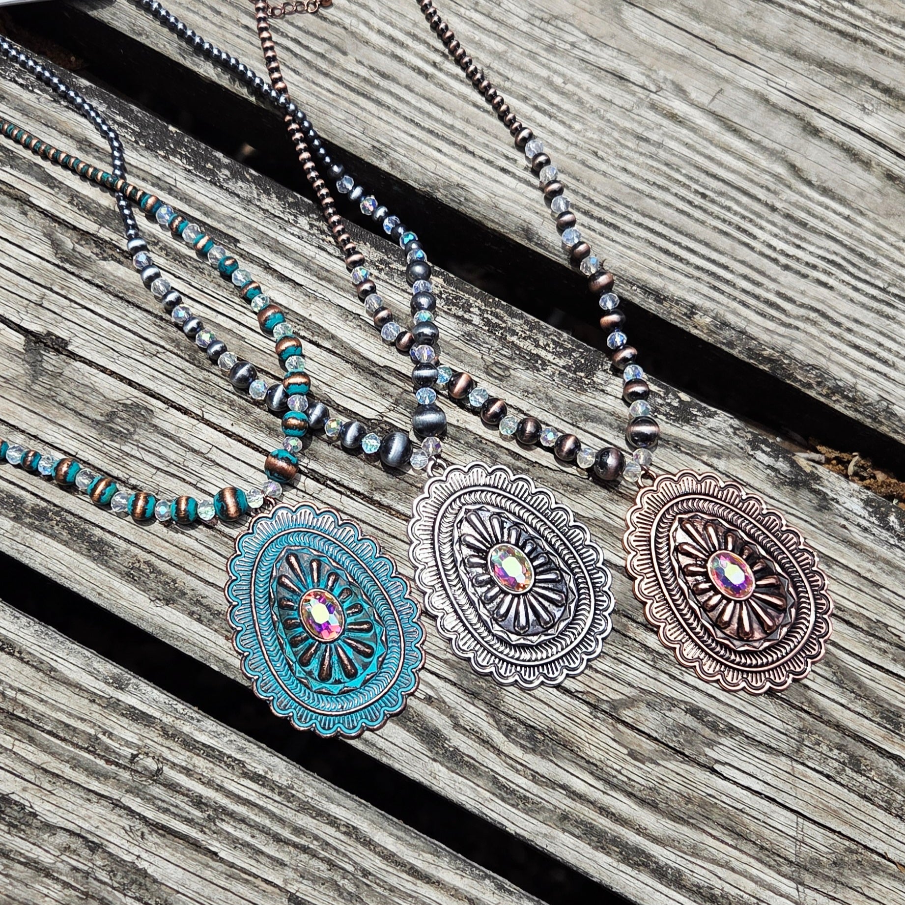 Effortlessly elevate your style with the Make it Easy Concho Necklace. This adjustable necklace features stunning Navajo Pearls and a Concho design, adding a touch of Southwestern charm to any outfit. Perfect for a playful and unique look.