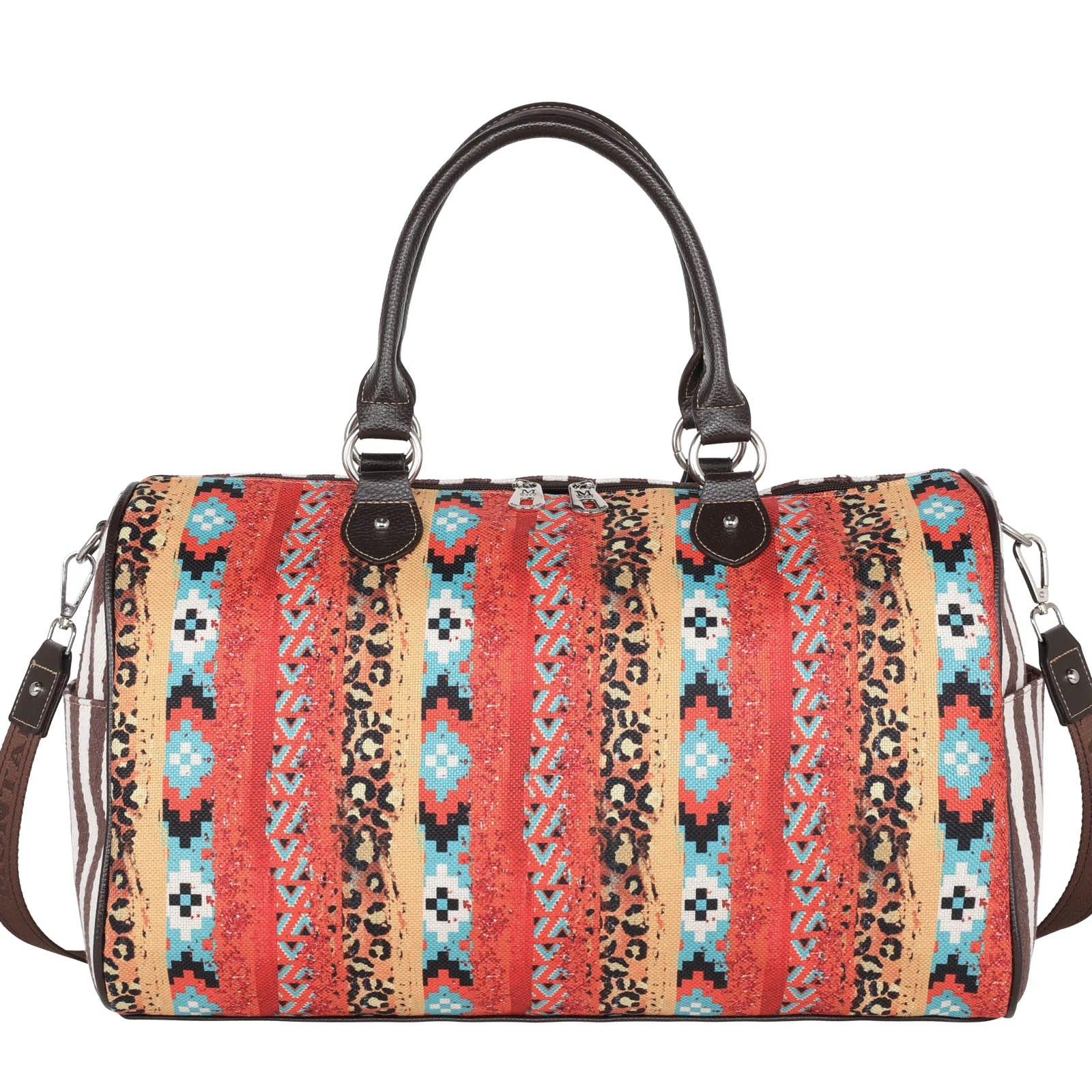 Made of the PU leather trimmed and canvas , this weekender bag has:
