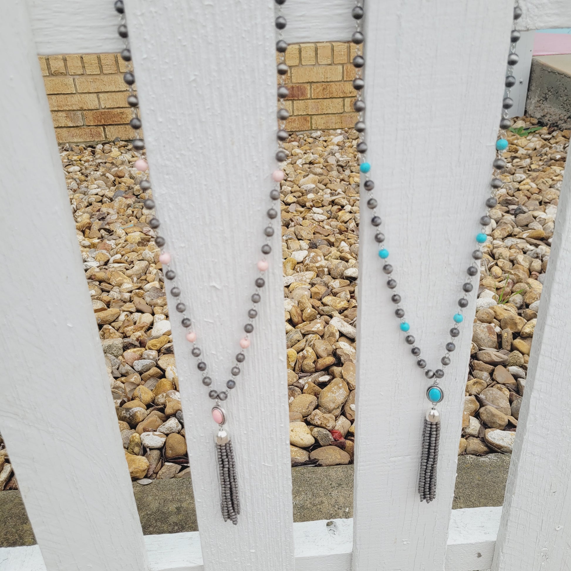 Yeehaw! This Rodeo Night Long Necklace pairs beautiful stones and Navajo pearls for a wild western look. You'll be the talk of the ranch, and with this long necklace, you can easily accessorize any outfit. Saddle up and add some flair to your wardrobe!