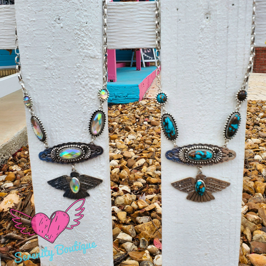 Thunderbird rhinestone or turquoise necklace
