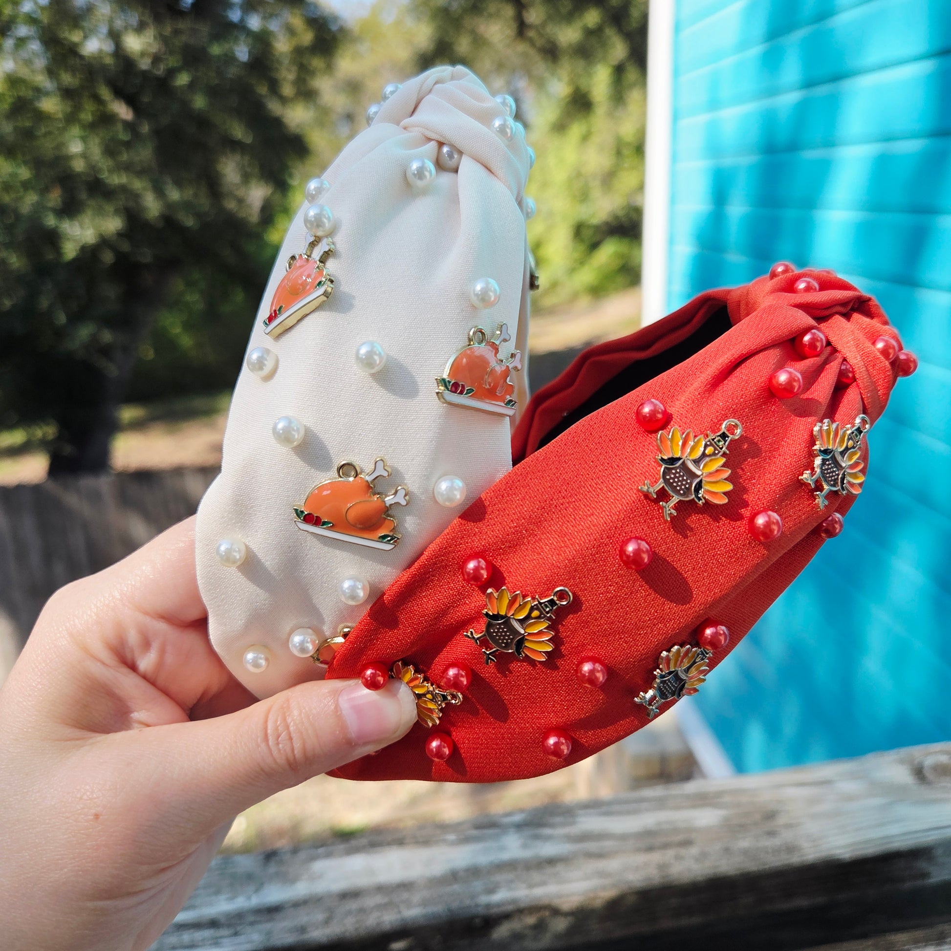 This Turkey Time Headband is the perfect accessory for your Thanksgiving celebration. Featuring a charming turkey and pearl accents, it adds a touch of festive flair to any outfit. The faux knot design adds a trendy touch while keeping your hair in place. Get ready to gobble up the compliments!